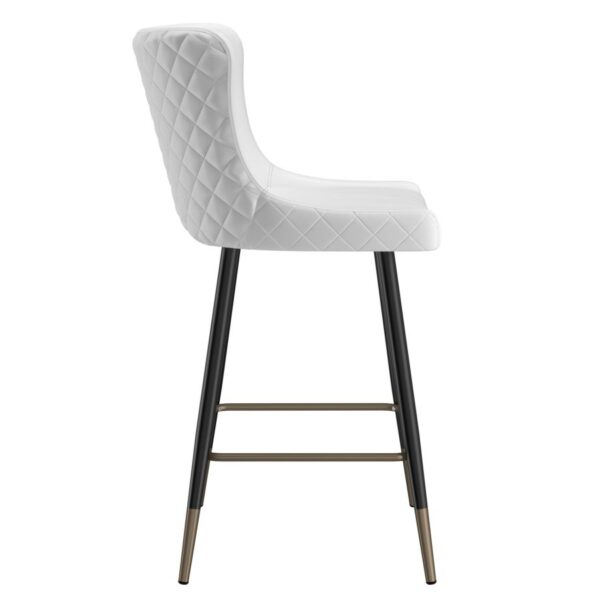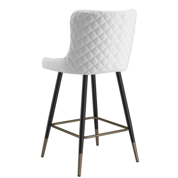 Find perfect, over-sized seating on this mid-century inspired counter stool. The contoured shape and plush, diamond-patterned tufting on the back provide comfort on one side and a dose of style on the other. Black metal legs with the gold dipped detail will provide sturdy support. Great for a casual kitchen setup or a formal basement bar.