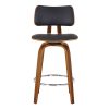 When the best of mid-century modern design is integrated perfectly into the current design world, you get gorgeous pieces like this stool. The bentwood frame and legs are beautifully finished in a timeless walnut, and the cushioning is all upholstered in a matte faux leather – creating the perfect modern mid-century piece. Full swivel allows for ease of use at any counter space.