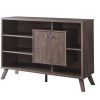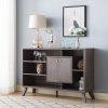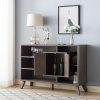 Add a touch of glamour to your in-home dining experience with this stunning multi-tiered buffet. The ample storage space provided by the storage cabinet and five open shelves combine form and functionality. It lustrous sheen and polished silver hardware enhance elegance, and the rich walnut finish brings sophistication and modernism to your dining space.
