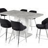 Style and substance collide beautifully with this chic counter set. The table showcases a rich faux-marble tabletop, supported by eye-catching curved double pedestals in popular contrasting colors. Sitting atop chrome finished legs, the chairs are expertly upholstered in rich velvet fabric wrapping the contoured seats and chair backs in an effort to express comfort and modern beauty in one breath. Once it’s all together, you get a stunning pub set built with enduring quality and long-lasting comfort in mind.