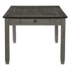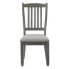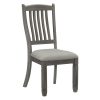 Inspired by the aesthetic of a casual country kitchen, the Granby Collection is an inviting gathering spot for mealtime with family and friends. A two-tone finish of the dining height table presents as a harmonious combination of color. The gray fabric seat complements antique gray finished side chair frame. 6-drawer on table apron and a 3-door server provide ample space in which to store your tabletop accessories.