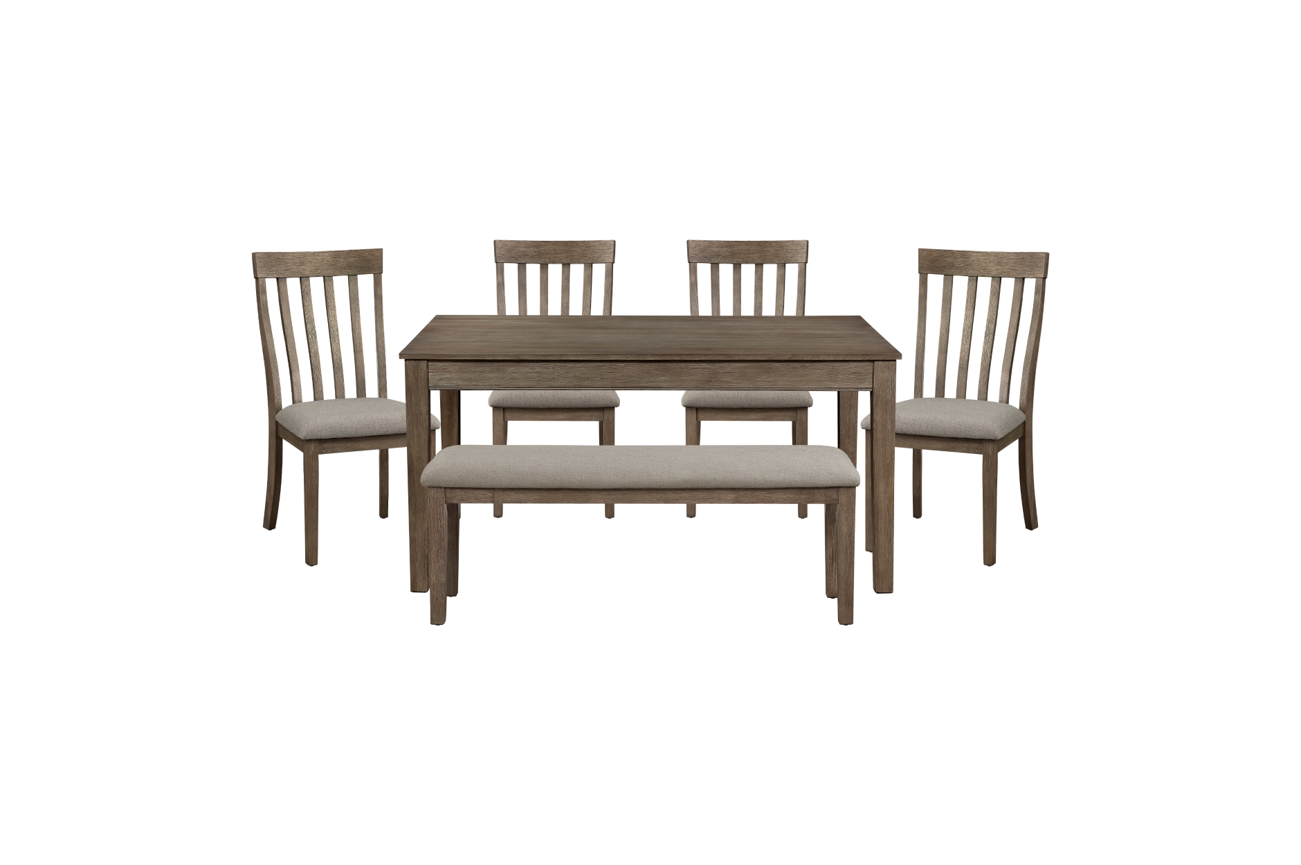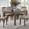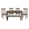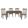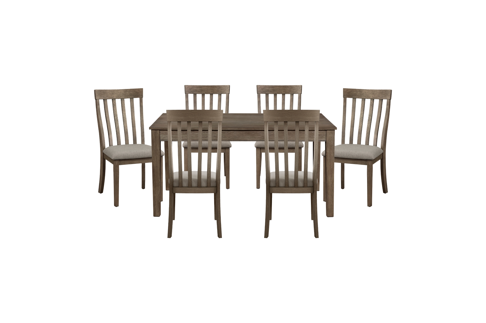 Functionality beyond the expected use of a tabletop makes the Armhurst Collection the perfect addition to your casual dining space. The ends of the table feature drawers for quick and easy storage of your smaller table top accessories. Brown finish is a versatile option for your decorative preferences. Wood framed chairs feature vertical slat backs with neutral tone seats.