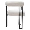 Practicality and style come together with a few turns. This table goes from a spacious stadium-shaped table, to an large-diameter round table in a matter of seconds – just a few one-handed turns of the table top. The sintered stone table is the best option for durability and design. Heat resistant, stain resistant, scratch resistant and, with the marble effect finishing, still pretty to look at! The sturdy cone-shaped pedestal base is the perfect finishing touch on this gorgeous new centrepiece to you dining room or kitchen. Bring the magazine-worthy dining experience to life with these beautiful, boucle-upholstered dining chairs. The textured fabric is quickly becoming a design staple for creating that high-end feel in your space. The square-line black metal frames and supports the chair perfectly, providing hours of seated comfort.