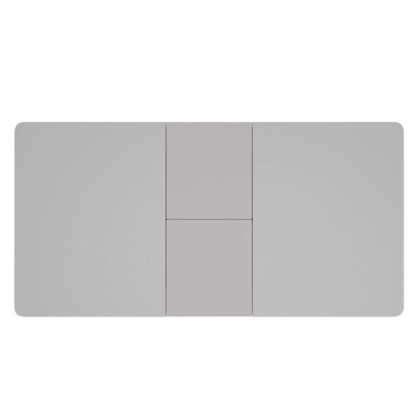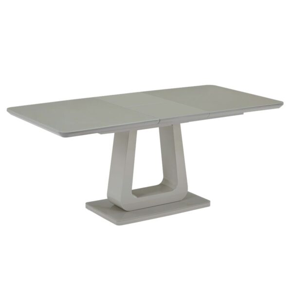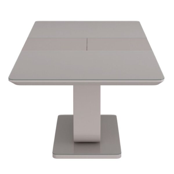 - 5mm tempered grey glass on table top and base plate; extension without glass creates a two-tone look on table top