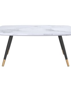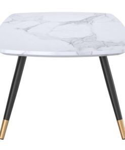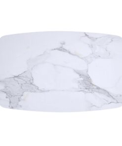 - Engineered wood table top with laminated veneer in a faux marble finish