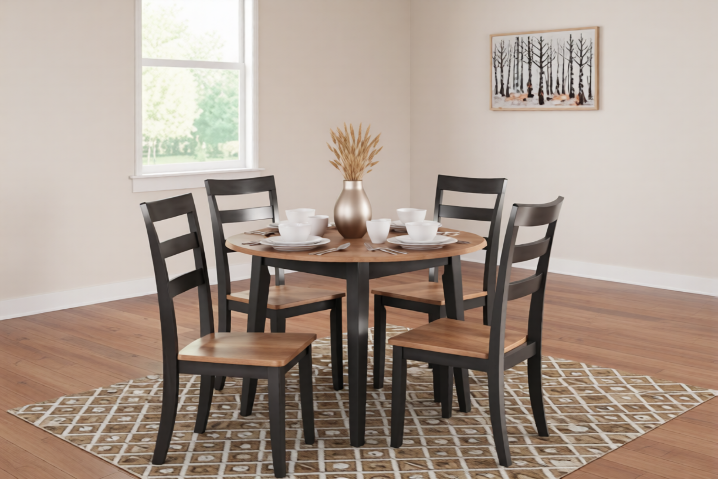 Complement your home’s simply relaxed sensibility with this dining package. A handsome dark brown hue offers a chic contrast to the natural wood tone, for a neutral look that vibes well with a variety of aesthetics. Whether you’re sipping your morning coffee, settling in for dinner or working from home, this set is smartly designed for everyday comfort and style.