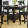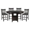Utilizing the traditional elements of mission styling, the Junipero Collection adds the feel of the early 20th Century design movement to your casual dining room. The pedestal table base supports an oval top and features storage accessible behind the drop-panel door. Framing, unique to the classic style, carries from the chair backs to the table base. The dark cherry finish serves to highlight the wood veneer.