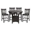 Utilizing the traditional elements of mission styling, the Junipero Collection adds the feel of the early 20th Century design movement to your casual dining room. The pedestal table base supports an oval top and features storage accessible behind the drop-panel door. Framing, unique to the classic style, carries from the chair backs to the table base. The dark cherry finish serves to highlight the wood veneer.