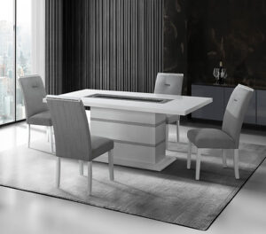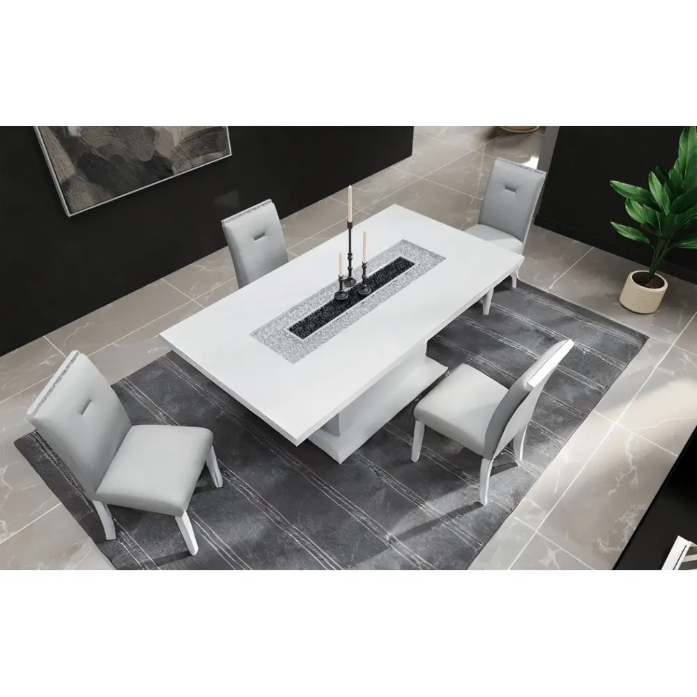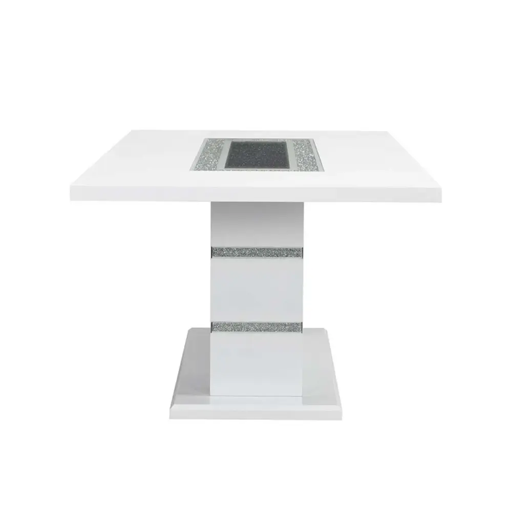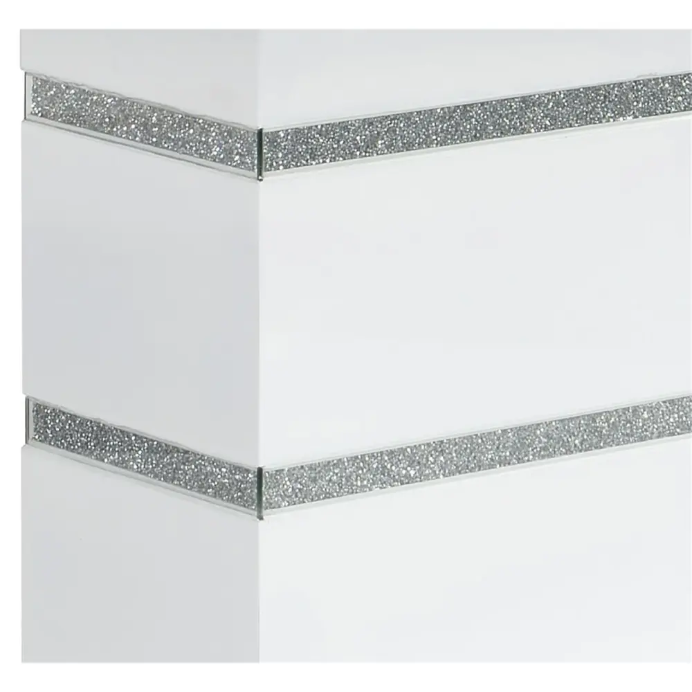 - High Gloss White Finish with Glitter Detailing