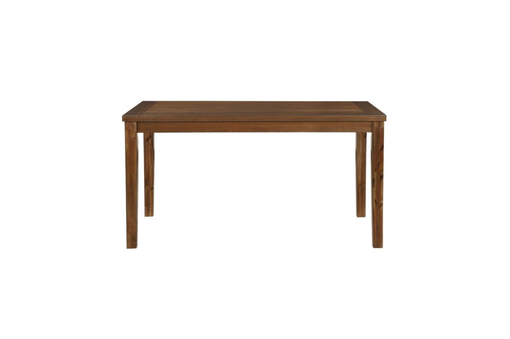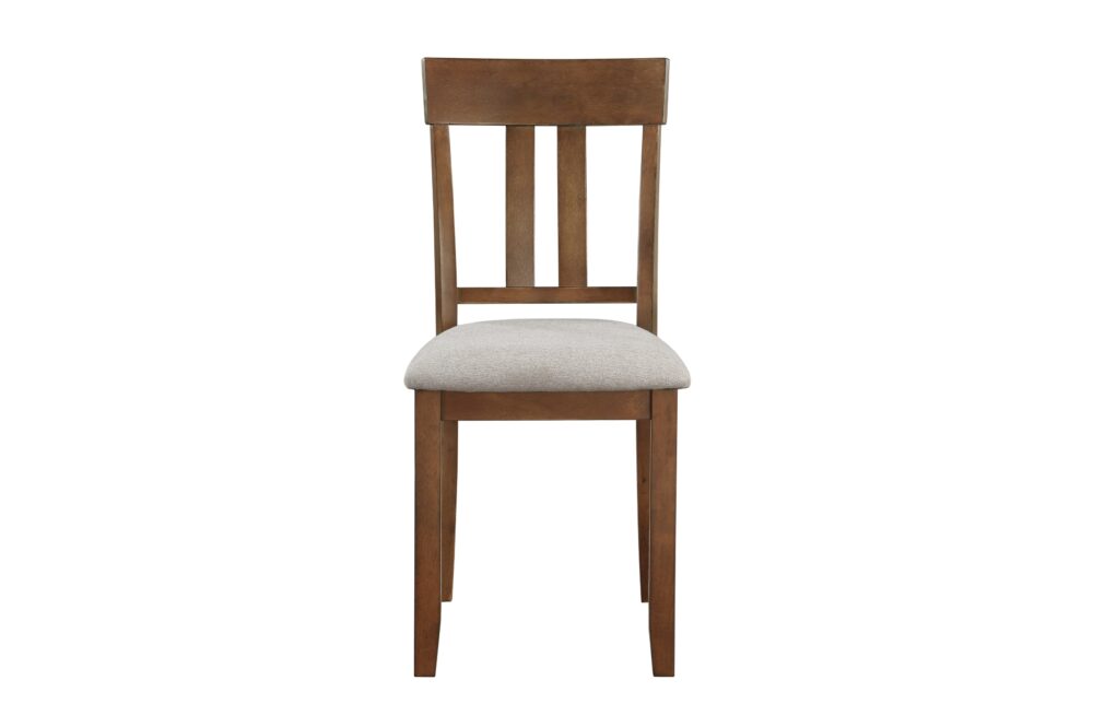 The transitional styling of the Prineville Collection takes subtle direction from the classic look of the Arts & Crafts movement and scales it for your home’s casual dining space. The dining group is conveniently packaged to include both the table and six side chairs. A cherry finish highlights the acacia veneer of the collection. Beige fabric upholstery covers the side chairs seats, it’s neutral hue a perfect complement to the cherry finish of the collection.