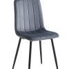Chairs: Dark Grey Velvet with Stitching Details, Black Steel Legs.