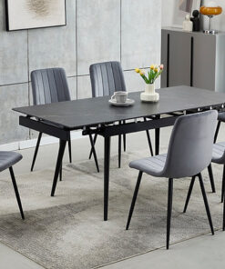 Extension Table: Sintered Stone Marble Top With Black Steel Legs