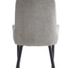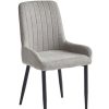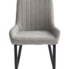 Chairs: Grey/Beige Fabric with Stitching Details, Black Steel Legs.