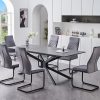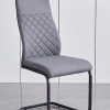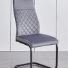 Chairs: Soft Grey Fabric with Diamond Stitching Details, C-Shaped Black Steel Base
