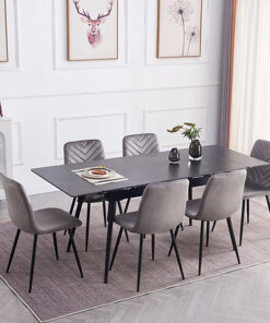 Extension Table: Sintered Stone Black Marble Top With Black Steel Legs.