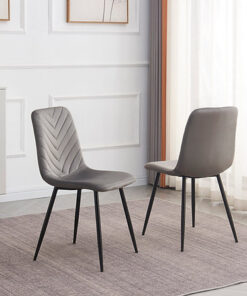 Chairs: Soft Grey Velvet, Stitching Details & Black Steel Legs