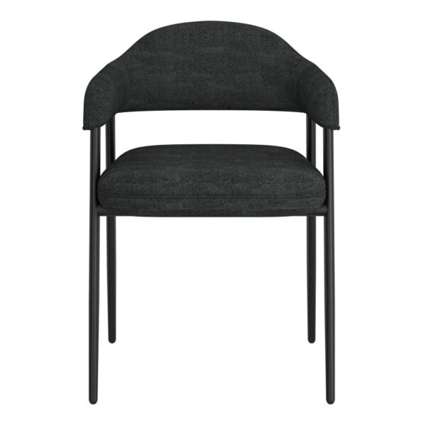 This modern dining chair is eye candy for your dining space. The curved back provide high support and comfort and the thick textured fabric is warm and inviting. Sleek black metal legs ensure this chair will work with any style table in any style room. Also great as an accent piece in a bedroom, living room, or hallway.