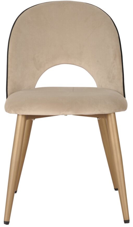 The Emilia Dining Chair Set is a stylish and sophisticated addition to your dining area. This set includes two chairs designed with contemporary flair and attention to detail, providing both comfort and aesthetic appeal. The chairs feature a curved back design, which not only offers ergonomic support but also adds a touch of elegance to their overall look. The curved back creates a visually pleasing silhouette and promotes a comfortable seating experience during meals and gatherings. The golden powder-coated legs of the Emilia Dining Chairs add a luxurious touch to the set. The golden finish complements the color of the chairs, creating an elegant contrast and enhancing their visual appeal. Contrasting piping runs along the edges, accentuating their contours and adding a refined touch. This small but impactful detail enhances the overall aesthetic of the chairs, making them stand out in your dining space. The chairs are upholstered in premium velvet fabric, which not only adds a sense of opulence but also offers a soft and comfortable seating experience. The velvet fabric cover provides a luxurious texture and adds depth to the chairs’ appearance, further enhancing their visual appeal.
