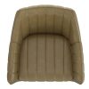 - Vintage faux leather upholstery with vertical panel tufting and black metal A-line legs
