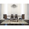 Upon entrance into the dining area, this contemporary table makes its presence known with appealing finishes, interesting stainless steel components, and a sleek geometric design that grabs attention and never lets go. Fashioned out of both wood and metal, the compelling and contrasting composition of this piece makes a striking statement while complementing a multitude of different chair styles and décor. Whether being used for gatherings big or small, the unique qualities of this dining table will pique your guest’s interest and act as a conversation starter all its own.