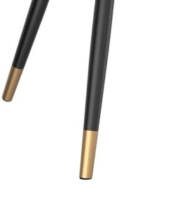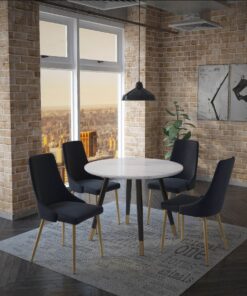 Clean, contemporary, marble-look dining table brings a true designer feel to your space. The A-line black metal legs have an aged gold accent that elevates this piece to couture status. A great match with various chairs styles and colours for a look that is uniquely your own.