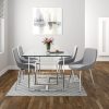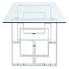 Open up your space with this beautiful contemporary dining table. The silver finish on the unique geometric-patterned legs gives a little sparkle to the light and airy look of the glass-topped table. It will look stunning with four chairs but will comfortably accommodate 6 – and mix and match with different chair styles and finishes to create the perfect look that works for you!