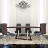Upon entrance into the dining area, this contemporary table makes its presence known with appealing finishes, interesting stainless steel components, and a sleek geometric design that grabs attention and never lets go. Fashioned out of both wood and metal, the compelling and contrasting composition of this piece makes a striking statement while complementing a multitude of different chair styles and decor. Whether being used for gatherings big or small, the unique qualities of this dining table will pique your guest’s interest and act as a conversation starter all its own.