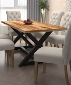 - 2″ thick solid mango wood table top with panel look