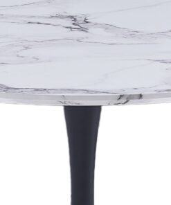 Zilo 40 Inch Round Dining Table In White Faux Marble And Black