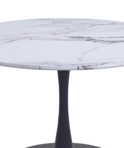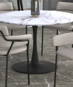 Zilo 48 Inch Round Dining Table In White Faux Marble And Black