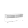 Sleek and functional, this Rowan 134.6 cm (53 in.) TV stand brings contemporary style to your living room or entertainment space. It effortlessly fits in with most décor schemes, while the streamlined design and curved legs bring simple sophistication to your space. The entertainment stand features two large, open storage shelves with ample space to house all your media components and accessories, from gaming consoles to media streaming devices and remote controls. It is designed to accommodate most flat panel TVs up to 139.7 cm (55 in.). Top this TV console with a flat-screen TV, sit back with close friends and family, and enjoy your favorite movies, shows, and sports.