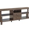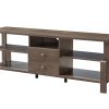 With both fashion and function in mind, this contemporary TV stand easily accommodates flat panel TVs up to 60 inches while adding a touch of refined style to any room. The stand features a raised top and flared legs that add character to the straight profile. A luxurious walnut oak finish gives it an air of sophistication and seamlessly complements existing furniture pieces. The spacious top offers room for décor items while five open shelves and two drawers provide ample space for media components and accessories, allowing you to store clutter out of the way. An elegant addition to your living space, the stand enhances your entertainment area and is sure to impress.