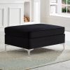 Black Velvet With Deep Tufting and Nailhead Details, Chrome Legs and Accent Pillows.