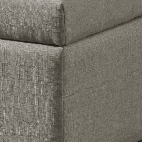 Items you keep in this ultra-deep storage ottoman may be out of sight and out of mind, but this piece can stay front and centre! A perfect add-in to any space for extra seating when needed and extra storage always available. The button-tufting design on the upholstered top is a fun design feature. Safety-stop hinges keep fingers safe by preventing any accidental slamming of the seat. Sturdy black legs provide stability and support in this versatile piece.