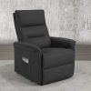 Plush comfort meets sophisticated style in the Recliner Lift Chair from Brassex. This recliner chair is available in a sleek and versatile grey colour that will complement a wide range of home décors, and has a slim profile designed to fit in most compact spaces. Featuring a power lift function and a multi-position power reclining mechanism, this recliner lift chair is built for ergonomic comfort and supports proper back alignment while you’re relaxing with a book or watching TV. It’s even equipped with a convenient side pouch to hold the TV remote, magazines, and more. With a padded headrest, armrests, backrest, and footrest for plush comfort and a rich fabric cover that provides an extra luxurious look and feel, this lift recliner chair will quickly become your favourite seat in the house.