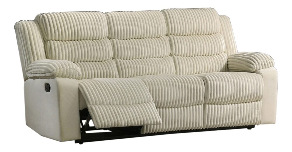 Experience everyday comfort with this stylish dual reclining sofa, designed to bring relaxation and modern appeal to your living space. Upholstered in soft ribbed corduroy fabric, the sofa offers a cozy texture and inviting feel that makes it perfect for unwinding after a long day. The generously padded seats, supportive backrests, and cushioned armrests create a comfortable place to sit back, relax, and enjoy your favorite shows or spend time with family and friends. Both end seats feature smooth manual reclining mechanisms, allowing you to easily adjust your position for personalized comfort. The high-back design provides excellent support for your back and shoulders, while the durable construction ensures lasting stability for everyday use. Combining plush comfort, practical functionality, and contemporary style, this dual reclining sofa makes a welcoming addition to any living room.