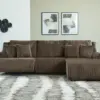 Customizable, contemporary comfort. This modular sofa sectional with chaise changes as your living room needs do. You can stage and rearrange the pieces as you please, whether it’s for family TV time, hosting guests or a simple style refresh. Adding to the sectional’s versatility: a goes-with-anything neutral hue. And it keeps your relaxation a priority, with ultra-plush feather blend seat cushions rounding out the upscale design.