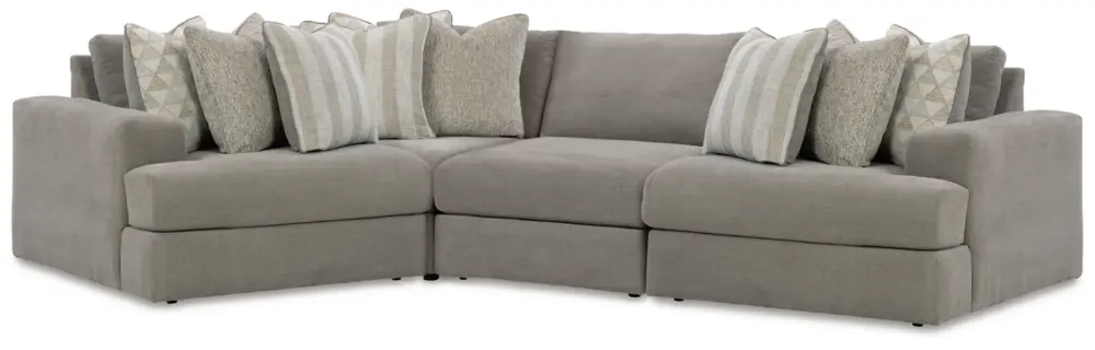 - Includes 4 modular pieces: left-arm facing corner chair, armless chair, wedge and right-arm facing corner chair