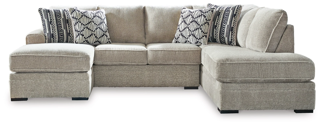- Includes 2 pieces: left-arm facing sofa chaise and right-arm facing corner chaise