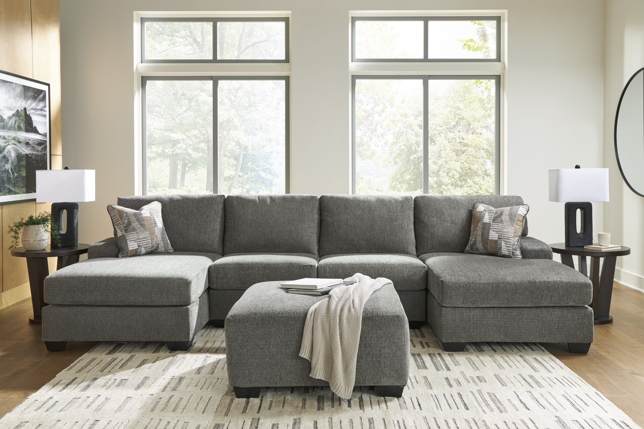 - Includes 3 pieces: left-arm facing corner chaise, armless loveseat and right-arm facing sofa with corner wedge