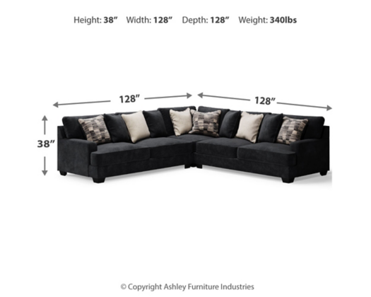 - Includes 3 pieces: left-arm facing sofa, wedge and right-arm facing sofa