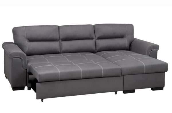 | T-1217 Pull-Out Sofa Sectional | 96″W 64″D 36″H | Air Suede Fabric | Grey |