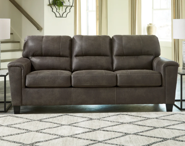 If You Love The Cool Look Of Leather But Long For The Warm Feel Of Fabric, You Can Take Comfort In This Queen Sofa Sleeper. Wrapped In A Fabulous Faux Leather With A Weathered Hue And Hint Of Pebbly Texture To Resemble The Real Deal, This Decidedly Modern Sofa Proves Less Is More. Elements Include Angled Side Profiling And Track Armrests Wrapped With A Layer Of Pillowy Softness For That Little Something Extra. Prominent Jumbo Stitching And Clean-Lined Divided Back Styling Lend Fashion-Forward Flair. Rest Assured, The Queen Memory Foam Mattress Comfortably Accommodates Overnight Guests.
