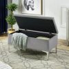 Grey Velvet Storage Bench with Deep Tufting and Chrome Legs