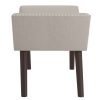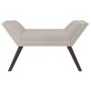 Retro styling gets a modern makeover with this piece. A bench for the best of spaces – one that demands to be noticed. And with its sexy flared legs and nail head detailing on the sides, there is no way it will be missed! The comfortable linen-look fabric and button tufting on seat make this interesting bench as functional as it is beautiful. The solid wood, coffee finished legs will go well with any decor.