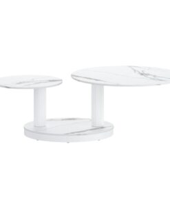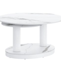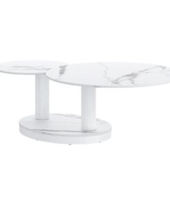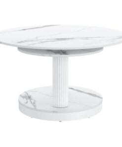 Elevate your living space with this contemporary coffee table, designed for both style and functionality. Featuring an innovative extendable top, this piece effortlessly adapts to your needs, providing extra space when you need it most. The durable sintered stone on the table tops and base combine with the reeded pedestal posts to create an exceptionally gorgeous table that will work in casual or formal living spaces.