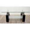 This stylish coffee table set features a rectangular coffee table with a glass top and a lower shelf, and two smaller square side tables with glass tops. The black legs complement any decor style.