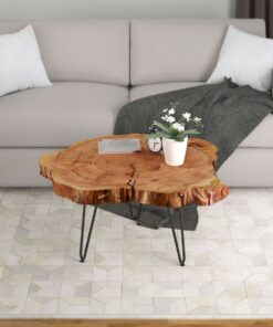 With its inspiration taken directly from the great outdoors, this coffee table makes for the ideal location to sit and connect with nature right within your own home. Utilizing the sturdy rigidity of its modern accents alongside a unique flair of rustic charm and history with its solid wooden elements, this table stands proud among any décor. Perfectly matched for the living room as a focal point, in the sitting room as a conversation piece, or even in an entryway or bedroom as an accent, this artisan-crafted table is sure to always draw complements with its minimalistic frame and timeless design.