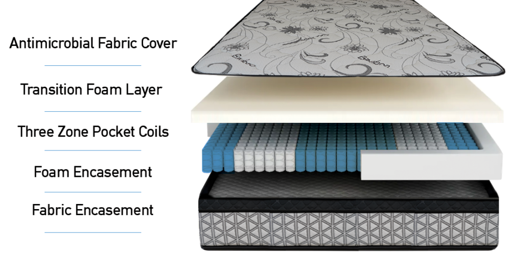 The Amber is a premium hybrid mattress. Feel supported with an advanced three zone pocket coil system, topped with a medium firm layer, and a two inch medium firm eurotop. A firm foam encasement is added to provide added strength to the edges.