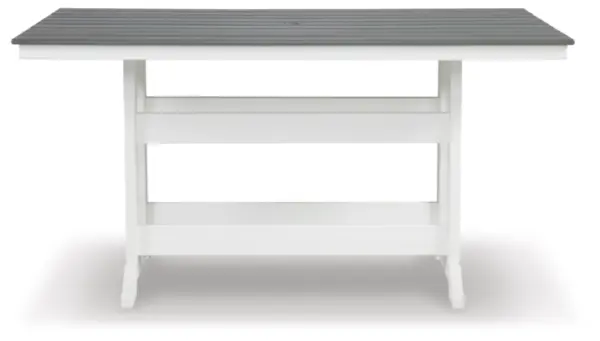 Gather friends and neighbors on the back deck or poolside to enjoy good times and make happy memories. Designed for easy-breezy living, this two-tone counter height outdoor dining table is made of durable MEGA TUFF™ HDPE material to withstand harsh weather. The gray and white table is made with stainless steel hardware and aluminum supports for extra strength. Raise a glass and make a toast to your comfortable outdoor lifestyle.